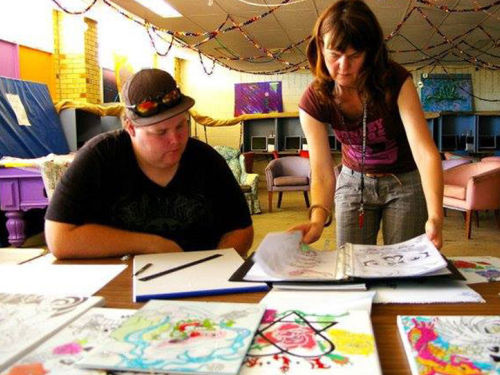 Her artistic loves include retro quirk, art made by the untrained or outsiders, the depression era, hand painted signs, paper cutouts, energetic linework, the block print, colour that sings, earthy and flouro… sometimes together, besser blocks, wood work, composting and cricket.