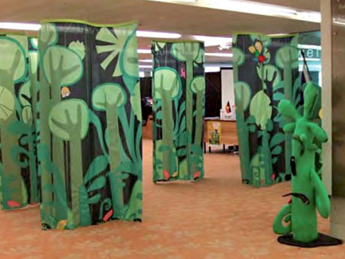 Character design, illustration for web and signage, and interactive display design throughout the library.